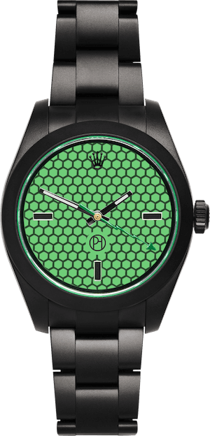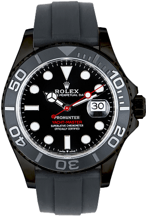 The Pro Hunter Matt Explorer has a diamond-like carbon matt coating on a 39mm case. The black dial is enhanced with the Pro Hunter logo in red and the sweeping hand is customised in red.